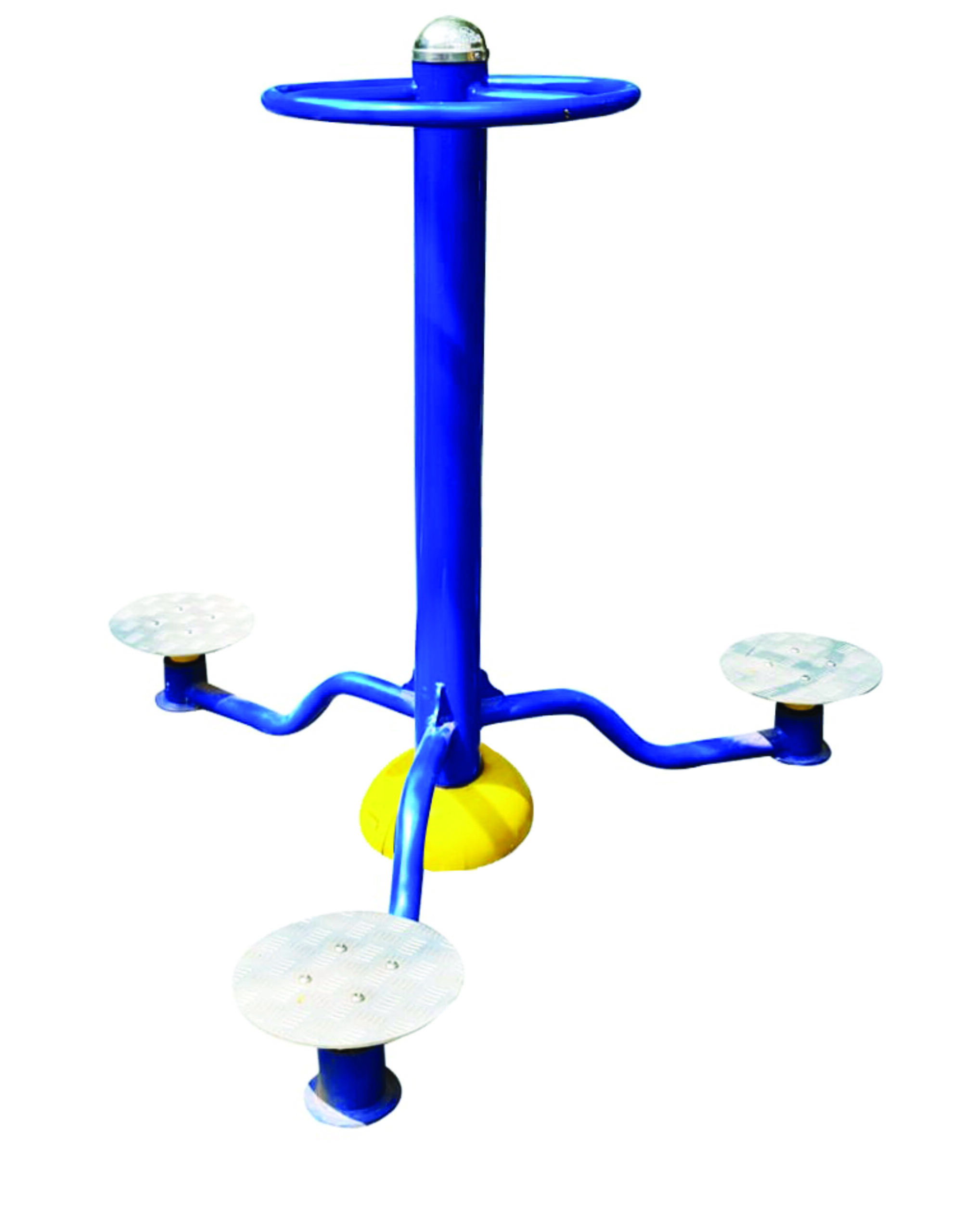 A robust standing twister system for outdoor training to develop obliques and core flexibility not provided outdoors.